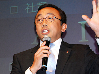 20周年感謝会で就任の挨拶をする高橋慎介新社長創業後2~3年は苦しい日々、10年はメーカーとしての地位確立を重視