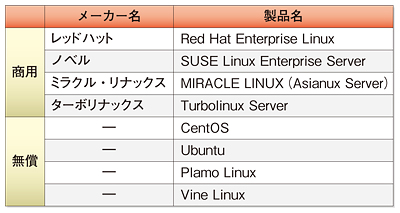 WindowsやUNIXに比べて、Linuxの種類は多い。各メーカーが独自サービスを付加した有償版と無償版は、合わせて約20種類がある。表には主なLinuxをまとめた。有償版では、レッドハットを筆頭にノベル、ミラクル・リナックス、ターボリナックスが主なプレーヤーだ。なかでも、ミラクル・リナックスはユニークな開発体制をもつ。コミュニティに加え、韓国のハーンソフトや中国のレッドフラグといった、アジアの有力Linuxメーカーと共同で開発する体制を敷く。協業することで開発コストを削減できるほか、「各国での要望、ニーズを取り入れることで品質の高いLinuxを開発することができる」(ミラクル・リナックスの児玉崇社長)という。市場獲得争いで最も高いシェアをもつのがレッドハットで、過半数を握っている。レッドハットは、Linuxだけでなく、仮想化ソフトやアプリケーションサーバーなども企業買収を通じて製品化し、Linuxで獲得したユーザー企業に対して新たな提案をしようとしているのが最近の動きだ。