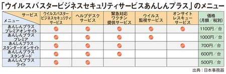 「VBBSS」は、ウイルスや不正アクセスなどからパソコンを守る、中小企業をメインターゲットに据えたSaaS型のセキュリティサービスだ。NJCは、「VBBSS」にヘルプデスクサービスなど、複数の独自サポートを付加し、「ウイルスバスタービジネスセキュリティサービス あんしんプラス」として商品化した。5種類のメニューを用意して、最安モデルは月額500円で販売している。 「VBBSS」を販売するには厳格な基準がある。NJCはその審査をクリアした国内唯一のIT企業だ(5月12日時点)。NJCは、古くからトレンドマイクロのパートナーで、競合する製品は併売していない。トレンドとの関係は深く、「今回のサービスも設計段階から携わってきた」(西浪一雅・事業推進本部プラットフォーム事業推進部チーフ)。