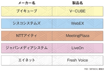 主なウェブ会議システム