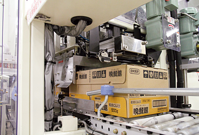 看板商品の一つである「晩餐館焼き肉のたれ」の箱詰め作業