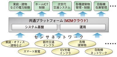 M2Mとは、自動車や自動販売機、各種センサーなどのマシン(機械)の間で情報を交換し、収集したデータを管理・活用することによって、オフィスや工場での節電対策や、交通の整理、物流の効率化など、都市インフラを改善することを追求するものだ。