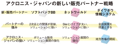データバックアップ事業のアクロニス・ジャパン(村上督代表取締役)はこのほど、販売パートナー戦略を一新した。これまで同社のマスターディストリビュータであったラネクシーとの契約を解除して、新たにソフトバンクBB、ダイワボウ情報システム、ネットワールドの3社と販売代理店契約を締結。これによって、地域の開拓と、バックアップをソリューションの一部として提供する施策を強化していく。