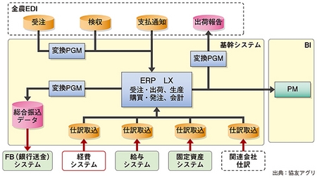 協友アグリは、約400種類に上る品目の除草剤や殺菌剤、殺虫剤を製造・販売する農薬メーカーだ。全農(全国農業協同組合連合会)との取引が全体の90%を占める。およそ20年前から販売管理、生産管理、会計管理システムを個別に導入し、NECのメインフレームなどの上で動かしてきた。