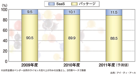 ITRによると、2010年度のパッケージ型市場の成長を支えたのは、日本マイクロソフトの「Microsoft Exchange Server」と日本IBMの「Lotus Notes/Domino」だった。「Microsoft Exchange Server」は、09年に出荷を開始した「Exchange Server 2010」の浸透が進み、大口のバージョンアップ案件を獲得。「Lotus Notes/Domino」もV6.5/7.0の11年4月のサポート切れが後押しするかたちで、同様に案件を積み上げた。一方でSaaS型は市場規模が大きいとはいえず、市場の成長をけん引するほど突出したベンダーが見当たらない状況だ。「Applitus」ブランドをもつネオジャパンや、「WebOffice」の富士通マーケティングが比較的多くの導入実績を挙げている。また、後発であるものの、「GRIDY」のブランドダイアログが健闘している。ただ、ここにきて日本マイクロソフトと日本IBMがSaaS型の販売を推進。外資系大手ベンダーが本腰を入れることで、SaaS型市場の勢力図が変わる可能性がある。