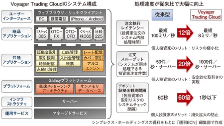 金融商品取引システム開発のシンプレクス・ホールディングス(金子英樹社長)は、日本ヒューレット・パッカード(日本HP)のデータセンター(DC)サービスを活用した個人投資家向けの取引システム「Voyager Trading Cloud(ボイジャー・トレーディング・クラウド)」を今年6月に本格稼働させた。個人投資家向けでは世界最速級の処理速度を誇るもので、クラウド方式でサービスを提供している。