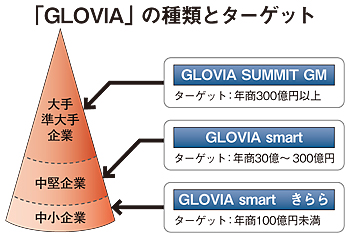 昨年10月1日、FJMは、富士通ビジネスシステム(FJB)から社名を変更し、中堅のユーザー企業向けのSI・ITサービス事業に集中する体制を敷いた。社名変更とほぼ同時期に「GLOVIA」シリーズの企画・開発部隊をすべて富士通からFJMに移管している。つまり、FJMは、「GLOVIA」の全シリーズでは販社であり、メーカーでもある。これまで獲得してきた「GLOVIA SUMMIT」のユーザー約1800サイトは、「年商1000億円以上の超大手企業に多く使われている」(渡辺雅彦・常務理事ソリューション事業本部副本部長)。ターゲットを年商300億円以上のユーザー企業に置いているものの、実際はそれよりもはるかに大きい企業にしか入り込んでいないわけだ。