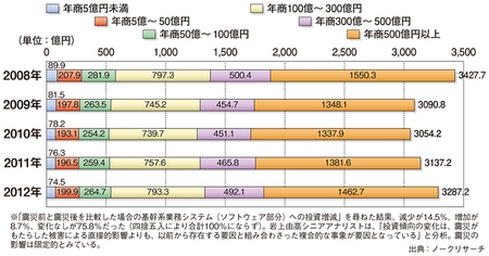 調査会社のノークリサーチによると、2009年におけるERP市場規模は、リーマン・ショックに端を発する経済環境の悪化を受けて、前年比9.8%減の3090億8000万円だった。これを年商規模別にみると、年商500億円以上の大企業は13.0%減、5億円以上500億円未満の中堅・中小企業(SMB)は7.1%減だった。リーマン・ショックの発生でSMBのIT投資は大幅に落ち込んだが、サーバーの耐用年数超過への対応やERPのバージョンアップといったシステム更新をこれ以上引き延ばすことができない状況にあったため、大企業に比べると軽微な減少幅となった。