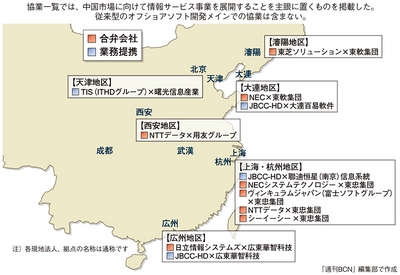 主要日系SIerと中国地場有力SIer、ITベンダーとの協業