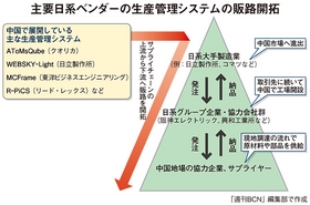 ITホールディングス(ITHD)グループで、建機メーカーのコマツが一部出資するクオリカは、コマツを中心とするサプライチェーンをフルに活用して主力の生産管理システム「AToMsQube(アトムズキューブ)」の売り込みに全力を挙げる。同じくITHDグループのインテックは、東洋ビジネスエンジニアリング(B-EN-G)の生産管理システム「MCFrame」を担ぎ、日立製作所は中国市場向けに開発した生産管理システム「WEBSKY-Light(ウェブスカイライト)」を今年から投入している。JBCCホールディングスも、グループ会社で生産管理システムを開発するリード・レックスの「R-PiCS(アールピックス)」の中国市場での展開を着々と進める。