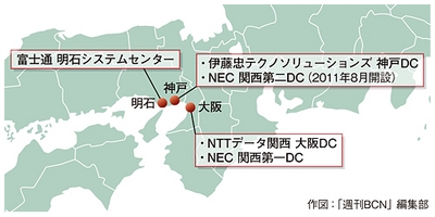 関西地区のDCは、この3か月、東日本の企業だけでなく、地元関西の企業の利用も増える傾向にある。原子力発電への依存度が高い関西地区は、発電所の定期点検による稼働停止などの影響を受けて7月から電力事情が悪化。関西電力管内のITユーザー企業は停電に備えて、急ピッチでBCP(事業継続計画)対策を図ることを余儀なくされている。NECは、停電時に無給油で48時間以上の給電ができる自家発電設備を備えたことを関西第二DCのセールスポイントとして、自社に近い関西地区内DCの利用を要望する関西のユーザー企業に向けて、提案活動に力を入れていく。また、兵庫県明石市にグループのDCを置く富士通関西システムズは、「DCの引き合いが震災前と比べて3~4倍、案件数でいえば約100件の水準で増えている」(白山健一社長)として、最近は、関西のユーザー企業を相手にした案件が増加しているという。