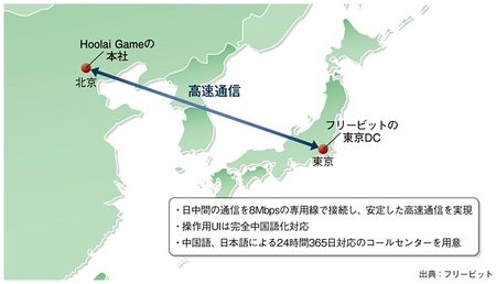 ソーシャルゲームの開発・運営を事業とするHoolai Game(互愛[北京]科技有限公司、黄建社長)は、ビジネス領域をアジア各国へ拡大することに取り組んでいる。その一環として、ゲームを配信するインフラ基盤の強化を図り、今年7月、フリービットのクラウドインフラサービス「VDC China Package」の導入を決めた。フリービットにとって、Hoolai Gameは中国で初のユーザー企業となる。