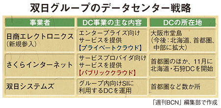 さくらインターネットは今年11月に、北海道・石狩に日本最大級の大型DCを開設する。日商エレはさくらインターネットと連携し、エンタープライズとシステムインテグレータ向けの石狩DC事業を手がける計画だ。日商エレは、7月1日付でDC事業室を立ち上げ、20人程度までスタッフ増員するなど、DC事業に本腰を入れている。それだけに、売上目標は意欲的だ。「5年後に、50億円程度に拡大したい」(宮倉室長)と鼻息が荒い。(ゼンフ ミシャ)