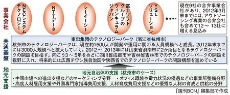 現在、合弁事業を手がける日系ベンダーは、従来のアウトソーシング型の会社も含めて9社あり、2012年3月までには12~13社に増える見込みだ。中国市場で迅速にビジネスを立ち上げるには、まずは開発や運用に携わる人員を確保しなければならない。日系ベンダーにとって、これは先行投資であり、多くのSIerが「仕事の確保が先か、人員の確保が先かのジレンマに陥る」(大手日系SIer幹部)ケースがみられる。東忠集団はここに目をつけて、仕事の量に応じて開発や運用の人員を合弁会社と融通する“東忠プラットフォーム”の構築に力を入れてきた。ニーズは旺盛で、直近の人員は約1500人に増え、2012年末までには3000人規模へ拡充することを計画している。
