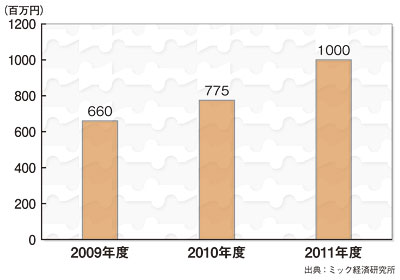ソーシャル機能/SNSパッケージ市場規模の推移(出荷金額)