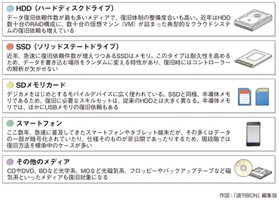 問題は、何重にもバックアップをとってある複雑なシステムで物理障害が発生したり、SSDなど半導体方式の記録メディア、ブラックボックスに近いスマートデバイスが故障した場合だ。これらを復旧するには、相当の技量が求められる。トップクラスの技量をもつベンダーの数は限られているので、難易度の高い復旧案件は自ずと上位20社ほどのサービスベンダーに集中する。ただ、ミッションクリティカルなデータを失う重大事故は、日常的に発生するものではない。このため、ユーザーやSIerなどがデータ復旧ベンダーの存在を十分に認知していないことも考えられ、販路整備はまだ道半ばという見方もある。