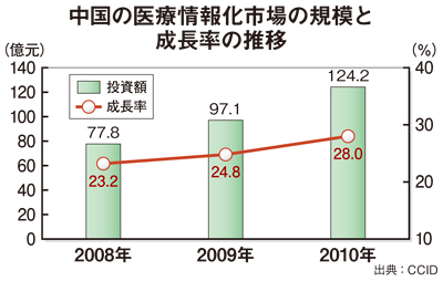医療機関のIT投資額は「今後3年間は前年比32.8%増で推移する」とみている。大病院だけでなく、中小規模の病院でもパソコンやサーバーなどの需要が高まっていることなどが理由。ただ、中国国内では、「ITベンダーは医療業務に関する知識に乏しく、病院は情報化に必要な技術的な知識と判断力が欠けている」と、CCIDコンサルティングは指摘しており、「第三者の指導が必要」とみている。