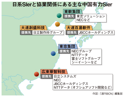 日本の有力SIerとパートナーシップを結ぶのに積極的な中国SIerは、実は複数の日系SIerと協業関係にあることが多い。広東華智科技は日立システムズやNEC、JBCCホールディングスと協業するほか、一部、NTTデータからのオフショアソフト開発も請け負う。杭州の東忠集団は、NECグループやNTTデータ、富士ソフトグループ、シーイーシーといった有力SIerの中国ビジネスを支援している。独立系の地場有力SIerであるにもかかわらず、日立製作所グループ一筋の大連創盛科技はむしろ珍しいケースだ。