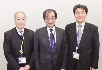 写真左から日立システムズの内倉宣夫担当部長、若園淳本部長、手島吉紀主管技師長