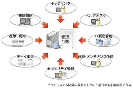 都市開発や不動産事業などの森ビル(辻慎吾社長)は、従業員が使うパソコンの調達・廃棄とトラブル対応にかかる手間・費用を減らすために、ヤマトシステム開発(皆木健司社長)の「PCライフサイクルサービス」を導入した。新たに購入するパソコンのキッティングから配送、既存パソコンの故障対応やトラブル解決、不要パソコンの廃棄までを請け負うサービスで、森ビルは導入後に約40%の費用を削減した。約2200台にも及ぶ保有パソコンの運用は、丸ごとアウトソーシングするほうが好都合と判断し、成果に結びつけた。