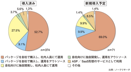 年商500億円未満のSMBの間では、ASP/SaaS形態のサービスとして勤怠・就業管理システムを利用するケースが徐々に増えている。とはいうものの、その利用比率はまだまだ低いのが現状だ。ノークリサーチによると、導入済みの製品/サービスの運用形態では「ASP/SaaS形態のサービスとして利用」が5.6%を占め、新規導入予定では8.5%となっている。運用形態で高い支持を得ているのが、「パッケージを自社で購入し、社内人員にて運用」。この形態は、導入済みで52.7%を占め、導入予定の企業では69.0%が検討している。一方で「パッケージを自社で購入し、運用をアウトソース」は導入済みで9.1%、導入予定でも9.9%と比率が低い。ノークリサーチでは、「タイムカードシステムなど社内に置かれた機器との連携ニーズなどもあって、運用を社外に委託しづらい側面がある」とみている。なお、「自社向けに独自開発し、社内人員にて運用」は導入済みが27.5%を占めるものの、導入予定の企業では9.9%とあまり支持を得ていない。