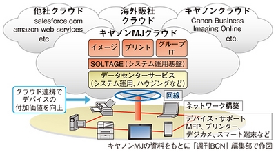 とはいえ、ライバル他社にも同様の追い風が吹いているわけで、キヤノンMJ-ITHDにとって決定的な有利条件とはならない。そこで狙うのがプリンタやデジタルカメラなどのキヤノン製デバイスとの連携や、世界のキヤノン販社とのサービス連携による差異化である。キヤノンMJの営業範囲は国内に限られているが、キヤノンMJ-ITHDが手がけるITソリューション事業に関してはグローバル事業の積極展開を掲げる。キヤノンデバイス連携やキヤノンのグローバルなネットワークは、ライバルSIerにはない強みであり、この経営リソースをフルに生かせるかどうかがキヤノンMJ-ITHDの第3世代DCビジネスの成否を大きく左右する。