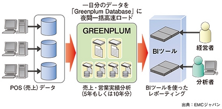 IT化への取り組みについて、取締役の西川晋二CIOは「競争が厳しいなか、コスト削減のための業務効率化はもちろん、売り上げを伸ばしていくための策を講じていけるシステムでなければならない。グローバルであたりまえになっているIT化は必須」とみている。販売データなど、日々収集するデータを最大限に活用して次の戦略に結びつける目的からも、DWH(データウェアハウス)を生かしたデータ分析を目指して、「EMC Greenplum Database」を導入することにした。