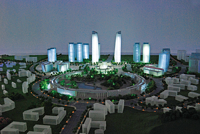 斉魯ソフトウェアパーク。約710社の企業が入居する(上)。写真下は拡張後の完成模型