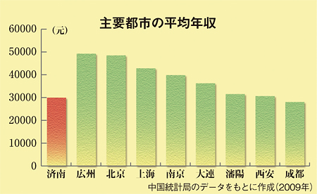 山東省は、中国全土の省・市で2番目に多い人口を抱え、孔子や孟子、諸葛孔明の出身地として知られる。その省都が、済南市だ。市の人口は682万人(2010年、日本貿易振興機構調べ)で、日本でいえば、埼玉県の人口にほぼ匹敵する。域内総生産は4406億3000万元。高速鉄道に乗れば、上海には約2時間半、北京には約1時間半、青島には1時間ほどで到着することができる。中心街には、外資系の高級ホテルやデパート、大型家電量販店が連なり、道路はきれいに舗装されている。日本からの渡航は、成田国際空港と羽田空港からは北京か上海を経由する。関西国際空港からは毎日直行便が飛んでいる。