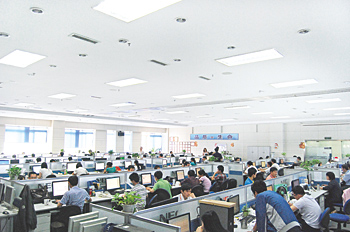 NEC軟件(済南)の設立は2005年で、NECグループからのオフショア開発事業ですべての売り上げを稼ぐ。設立時から一貫して右肩上がりで成長してきており、初年度6500万円だった売上高は、2011年度は19億5500万円。初年度57人だった社員は、現在は540人まで増えている。日本人は10人ほど。新卒者を積極採用し、毎年50~60人を迎え入れる。今年度は120人採用したという。従業員の平均年齢は27.5歳と若い。