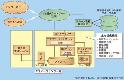 ITホールディングス(ITHD)グループのTISは、アリエル・ネットワークが開発した情報共有アプリケーションプラットフォーム「アリエル・エンタープライズ」を採用した。2011年4月に旧TISと旧ソラン、旧ユーフィットの3社が合併し、新生TISが発足したタイミングで、情報共有システムの刷新を検討。一度は旧TISが使っていたIBMのLotus Notesに片寄せしたが、11年6月に「アリエル・エンタープライズ」への移行を決定。ITHDグループのネオアクシスが主にシステム構築を担当した。