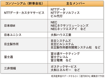 経済産業省は、節電やIT市場の活性化を目指し、300億円の予算を計上して、BEMSのシステム構築を手がける事業者を支援している。経産省は、「1000件以上の中小ビルを対象に、エネルギー管理システム(BEMS)を導入するとともに、クラウドによる集中管理システムを構築してエネルギー管理支援サービスを行う」ことを条件とし、このほど、21のコンソーシアムを支援対象として採択した。各コンソーシアムは数社のメンバーから構成され、幹事会社が指揮を執るかたちで、共同で案件の獲得に取り組む。経産省に採択された事業者は、電力や都市開発、ビル管理など、数多くの分野をカバーしている。ITベンダーで幹事会社として選ばれたのは、NTTデータグループのシステムインテグレータ(SIer)であるNTTデータカスタマサービスをはじめ、日本ユニシス、日本IBM、富士通、日立製作所、三井情報の6社である。NEC(本体とNECネクサソリューションズなどグループ会社)は、メンバーとして日本IBMが幹事会社となっているコンソーシアムに入っている。各コンソーシアムは今後、省エネ機器や蓄電池の導入サポートに加え、節電に関するコンサルティングやセキュリティの提供も含め、電力会社と連携しながら、BEMSサービスを包括的に展開する。