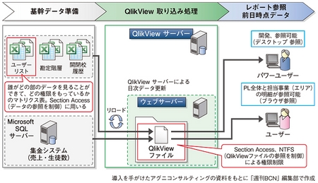 20社程度のサービスを検討するなかで、BIというIT用語を知ったという。「QlikView」は、特許技術によって全データを論理圧縮し、メモリ上に展開するBIツールである。OLAPキューブやデータマートなどの事前集計は不要で、すべてのデータの関係性を、画面操作をしたその瞬間に表示する「連想技術」を強みとしている。大生取締役は、人の感性に合わせて、分析の切り口を変えることができることに魅力を感じた。検討の結果、「QlikView」を提案したアグニコンサルティングが導入を手がけることとなった。