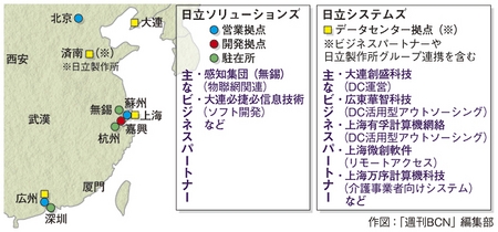 中国市場の特性の一つに、外資系単独では優良案件が受注しにくかったり、DC運営の許認可が得にくかったりすることが挙げられる。そこで、日立グループでは、拠点拡大と同時に地場パートナーとの連携を積極化。例えば日立ソリューションズは、上海近郊の無錫で、物聯網(ユビキタスやスマートコミュニティに相当)をはじめとする公共分野に強みをもつ地場有力ベンダーの感知集団と連携。日立システムズに至っては、直近だけでも介護事業者向けシステム分野で上海万序計算機科技、DC運営分野で上海有孚計算機網絡、リモートアクセス分野で上海微創軟件とそれぞれ提携し、お互いの強みを持ち寄るかたちで地場ビジネスの拡大を期している。
