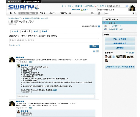 3次元CADデータを活用して、大手製造業向けの製品設計や商品企画をビジネスとしているスワニー(橋爪良博社長)。同社は2011年5月、ソーシャル・ネットワーキング・サービス(SNS)感覚で情報共有やコメント投稿ができる社内SNSツール「Zyncro」を導入した。Zyncroを基盤として、大容量の設計データを簡単に取引先と共有するなど、社内外のコミュニケーションを円滑にしている。