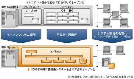 新旧システムでの処理タイミングの違いなどから生じる“正しい間違い=正常差異”も多く含まれ、本当の不具合との見極めに手間取った。本番稼働は大事をとって1か月延期。「別途作成した誤差検出プログラムの活用や、JDS側の全面的な協力もあって、最後の1か月で、正常差異も含めて、またたく間に数字が合うようになった」(NIIの櫻井主席)。「IBM System z」の謎のスローダウンもパッチを当てることで解決し、本番稼働からおよそ3年経ったが、非常に信頼性の高いシステムに仕上がった。安定稼働とオープン化によるコストダウン効果で、「レガシーマイグレーションにかかった費用は、稼働から5年で回収できる見込み」(JDSの長山部長)と満足げな表情だ。(安藤章司)
