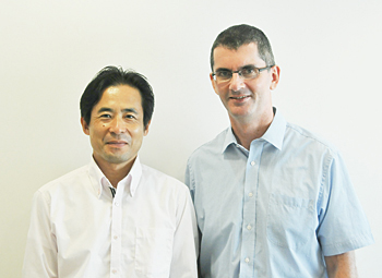 Anixter Japanの櫻木靖也カントリーマネージャー(左)と、ラリタン・ジャパンのジェラード・ポールクラーク カントリーマネージャー