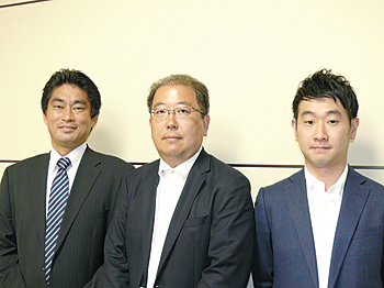 写真中央が三菱商事の星浩史部長代理、左がトライポッドワークスの佐々木賢一社長、右がトライポッドワークスの片岡裕紀マネージャー【効果】バージョンアップ版も即導入