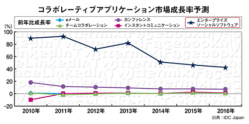 ※IDCによるソーシャルビジネスの定義は「ウェブ2.0テクノロジーを組織や企業文化、企業内ビジネスプロセスに適用し、人と人とが相互接続されたもの」見逃したらソン! 最新データ