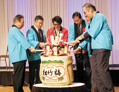 2011年1月の株式上場記念パーティーで、クラウド時代の成長を誓った1stホールディングスの内野弘幸社長(写真中央)