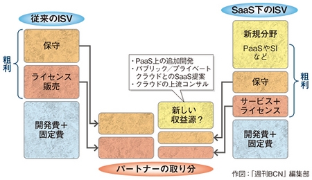 クラウド進展に伴うISV収益源の変化 「NTTデータの幹部に、『SIの仕事はなくなるよ』といわれた」。旧住商情報システム時代に国産初のERP(統合基幹業務システム)「ProActive(プロアクティブ)」の開発を主導したシステムインテグレータ社長の梅田弘之は、最近耳にしたこの言葉を胸に収める。SIは、受託ソフトのスクラッチ開発(手組み)を指すようだ。同社は、EC(電子商取引)サイト構築製品「SI Web Shopping」など独創的なパッケージを揃える。しかし、収益の中心は、これも梅田が主導して開発した「次世代ERP」と銘打った完全ウェブ版の「GRANDIT(グランディット)」の追加開発だ。