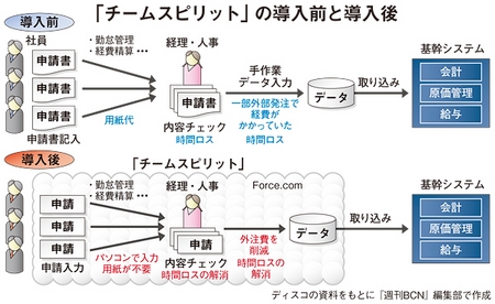 ディスコ(夏井丈俊社長)は、企業の人材採用に関するコンサルティングや人材紹介・派遣事業などを手がけている。セールスフォース・ドットコムのパートナー企業であるチームスピリットが開発・販売するクラウドベースのソリューション「チームスピリット」を利用して、勤怠管理や経費精算などの業務の効率化に大きな効果を上げており、社員同士の情報共有にも役立てようと試行錯誤している。