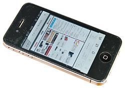 ●日常使う営業ツール.......... 一日あたり最低でも3社を営業先として訪問する和田さん。出張も多く、ほとんど会社にいないので、iPhoneを使って移動中にメールをチェックする。また、名刺のデジタル管理にも、iPhoneを活用。内蔵カメラで名刺を撮影し、端末に保存することで、荷物の数や重量を減らしている。フットワークだけではなく、持ち歩くカバンも軽くしているのだ。