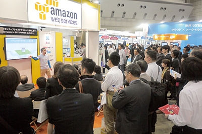 ネオジャパンの狩野英樹取締役は、多くのクラウドイベントに出展して、自ら「desknet’s NEO」の宣伝をし続けている(写真左の説明員が狩野取締役)
