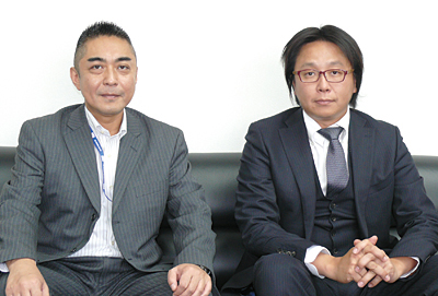 興銀融資租賃(中国)の上田篤副総経理(左)と上海電通信息服務の秋山修司事業推進本部部長 興銀融資租賃(中国)が「Lamp」の稼働を本格的にスタートしたのは2011年冬。それまでは、ファイナンスやリースを管理するために「Access」を使っていた。設立当初は契約件数が少なく、手入力でも十分に対応できたことが理由だ。ただ、上田篤董事副総経理は「ファイナンスやリースは、契約件数が増えれば増えるほど管理が煩雑になるだけでなく、間違いが起きやすくなる。しかも、中国では金利や税制などが頻繁に変更されるという問題がある」という課題を抱えていた。