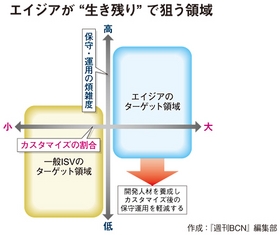 エイジアには秘策がある。「秘策」というと高等な戦略を想像するが、実をいえば同社の戦略は、他の多くのISVの逆を追求しているにすぎない。「パッケージにカスタマイズを加えることで、より使いやすい製品にする」(美濃)というやり方だ。どんな案件でも、ほぼすべてでカスタマイズを施す。過当競争が激しいECサイトにとっては、「競争力の源泉」と呼べる競合他社と異なる機能がほしい。「スクラッチ(手組み)したら、ユーザー企業の満足度は98~99%に跳ね上がった」と美濃は言う。カスタマイズを求める層の市場は「膨大にある」との見立てだ。