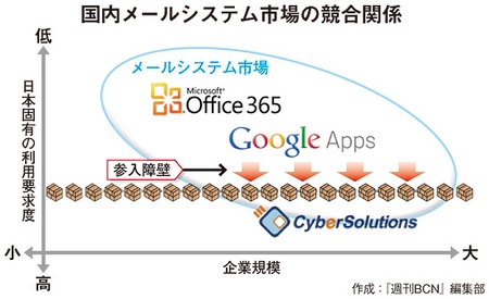 サイバーソリューションズは、グーグルや日本マイクロソフトの国内案件をすべて奪っているわけではない。「強いていえば、競合しないだけだ」(秋田)。企業が100社あれば、すべてがグーグルや日本マイクロソフトのサービスを選択するとは限らない。サイバーソリューションズのSaaS型メールシステム「CYBERMAILΣ(サイバーメールシグマ)」などは、100社のうちの数社に「指名」で選ばれる。