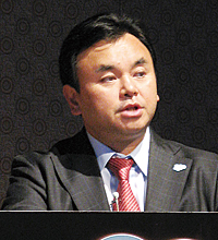 セールスフォース・ドットコムの日本でのビジネスは、拡大の一途を続けている(写真は、同社のイベントで講演する日本法人の宇陀栄次社長) セールスフォース・ドットコム(SFDC)の元社員で、それ以前には日本IBMにも所属していたのがテラスカイ社長の佐藤秀哉だ。もともとサービス形態で企業システムを構築するビジネスに造詣が深かった。テラスカイは、2003年にSFDCのコンサルティング会社として設立され、現在の売上高の8割は、SFDCの基盤上で利用するサービスのシステムインテグレーション(SI)が占めている。