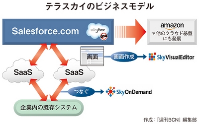 テラスカイの2012年度(13年2月期)の業績は、非常に好調だった。売上高は非公表だが、伸び率は前年度比で約50%増を記録した。好業績をけん引したのが、2010年10月にリリースした「SkyVisualEditor」だ。Salesforce.comの標準レイアウトでは実現できない自由なレイアウトや入力支援機能をもつ画面をノンコーディングで作成できるツールだ。