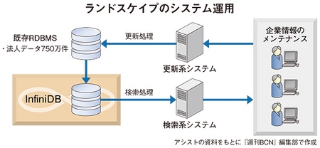 ランドスケイプ(福富七海社長)は、独自に構築した消費者/企業データベースをもとに、企業のマーケティングやCRM戦略の立案などを支援している。膨大な量のデータベースを構築しているだけに、データをメンテナンスするときの検索処理には、相当な負荷がかかっていた。そこで、アシスト(大塚辰男社長)が提供するDWH(データウェアハウス)専用のデータベース(DB)ソフトウェア「Calpont InfiniDB」を導入。検索時間を大幅に短縮して、業務効率化を果たした。